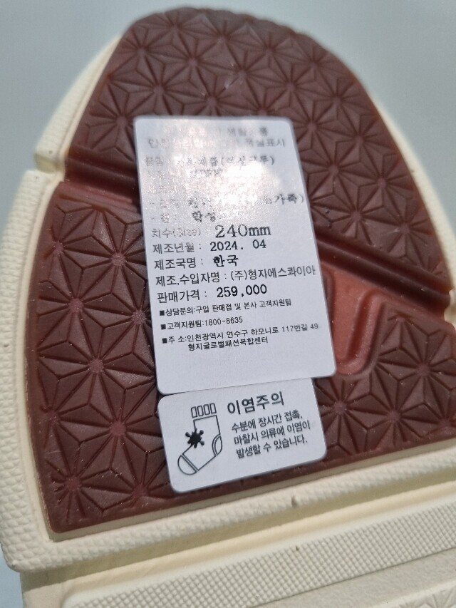 | 1. 제품 소재 (운동화인 경우에는 겉감, 안감을 구분하여 표시) | 염소가죽 |