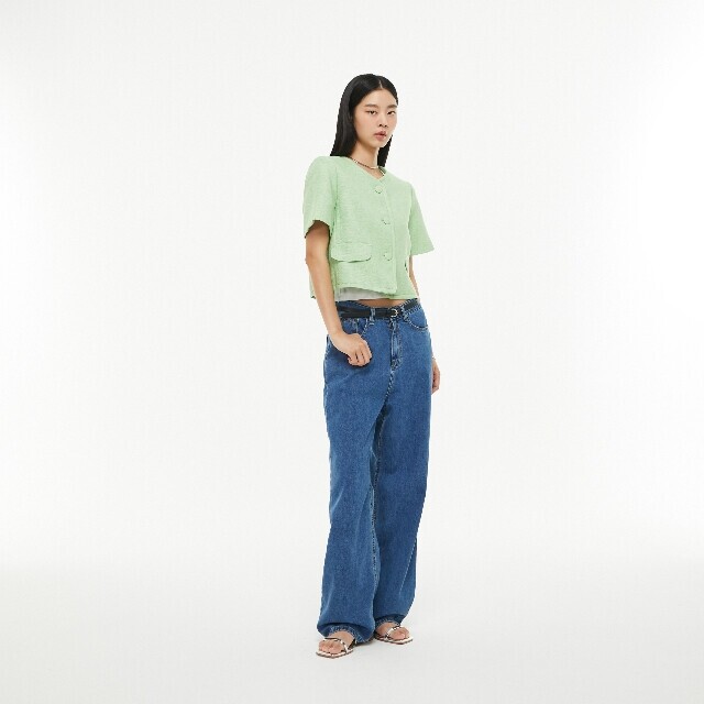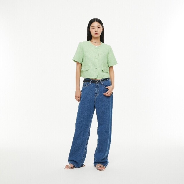 AP2WJ461 라운드넥 반팔 크랍 트위드 자켓