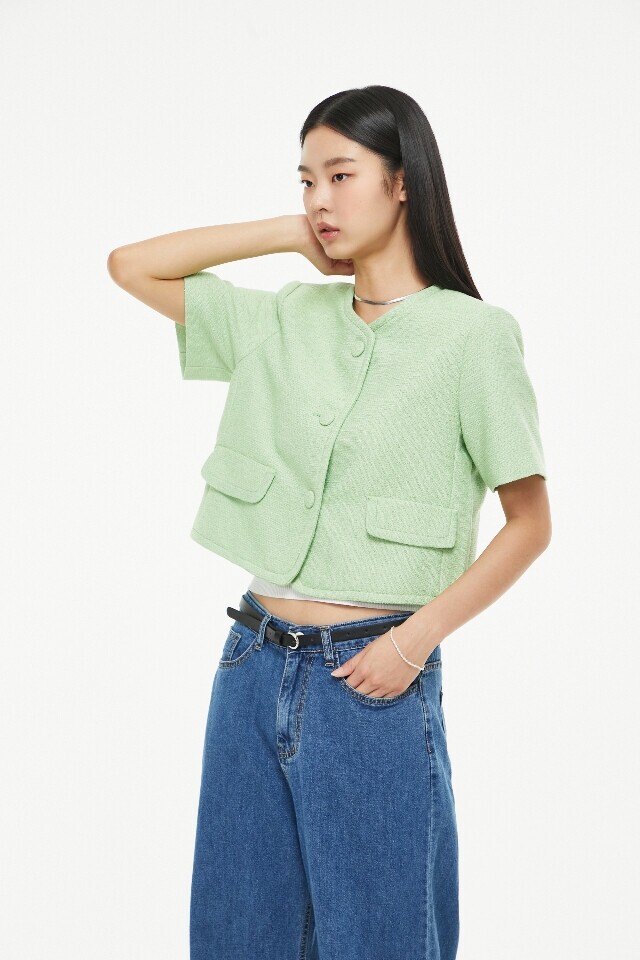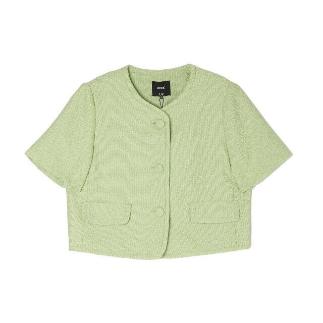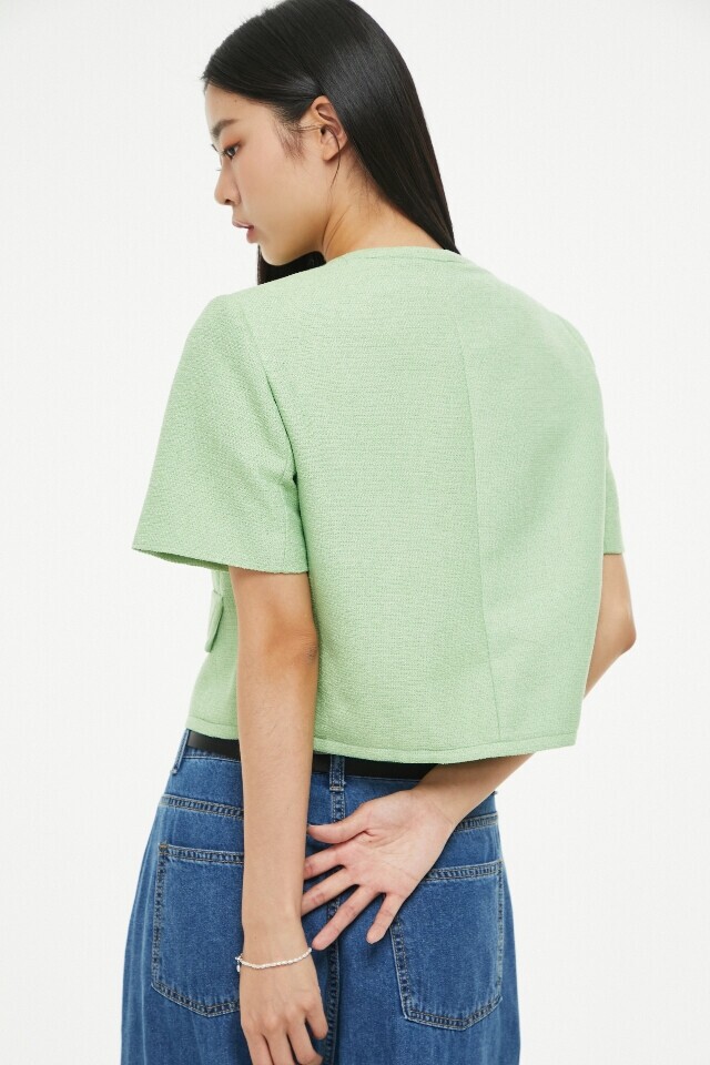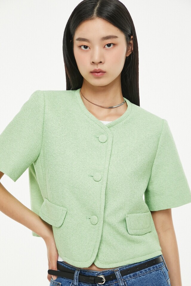 라운드 넥 반팔 크랍 트위드 자켓 ~