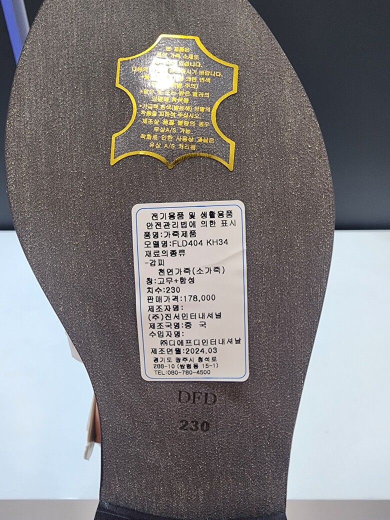 1. 제품 소재 (운동화인 경우에는 겉감, 안감을 구분하여 표시) 소가죽