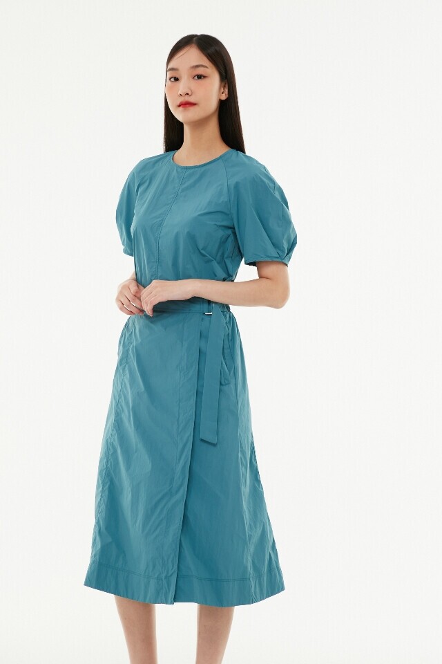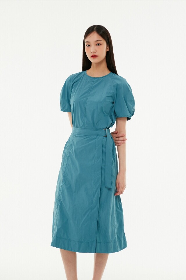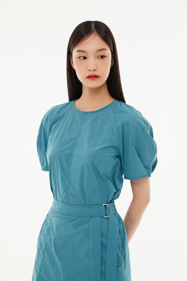 AP2WB56A 라운드 넥 볼륨 소매 블라우스