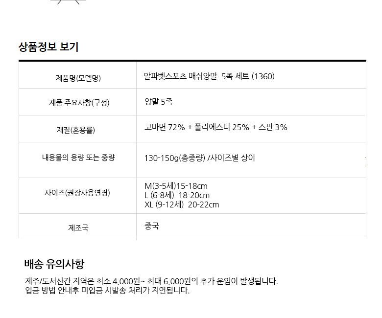 5. 재질 (섬유의 경우 혼용률) 상세페이지 참조