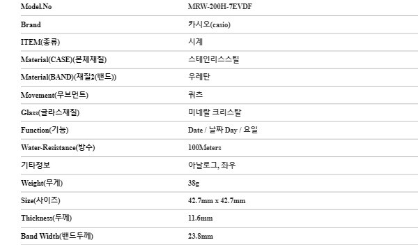 | 7-2. 시계 - 기능, 방수 등 | 상세정보참조 |