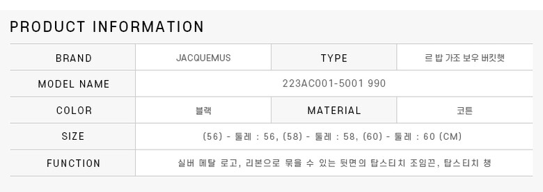 자크뮈스 버킷햇 223AC001-5001 990 르 밥 가조 남성버킷햇 여성버킷햇 당일발송