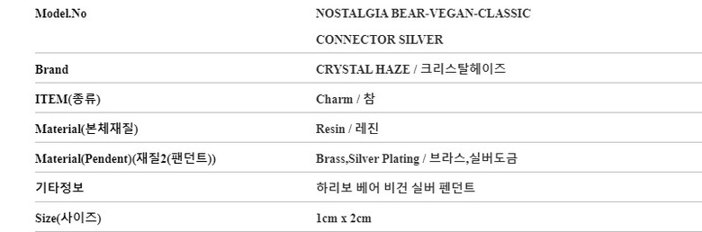 크리스탈헤이즈 노스텔지아 하리보 베어 비건 실버 펜던트 여성참 당일발송