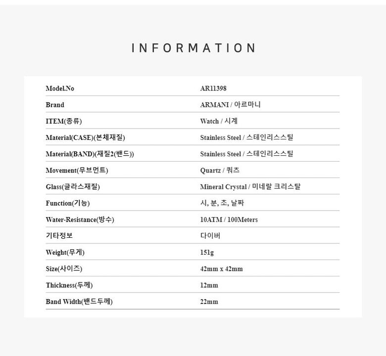 아르마니 시계 AR11398 다이버 남성메탈시계 알마니시계 당일발송