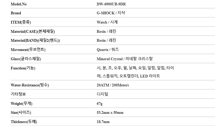 | 3. 제조사 | 지샥/(주)언커먼레이블-병행수입 |
