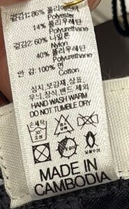 | 1. 제품 소재 (섬유의 조성 또는 혼용률을 백분율로 표시, 기능성인 경우 성적서 또는 허가서) | 폴리에스터,폴리우레탄,면 |