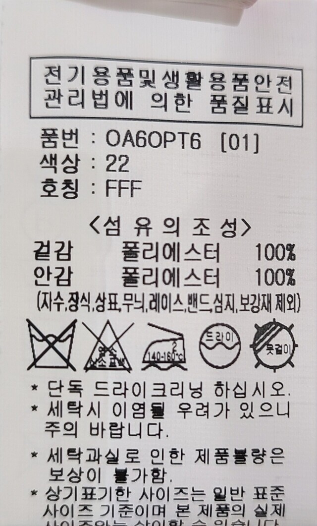 | 6. 세탁방법 및 취급시 주의사항 | 상품상세참조 |