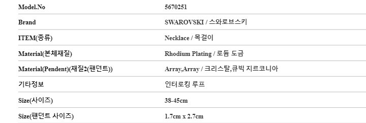 | 7. 주요 사양 | 로듐 도금 목걸이 |