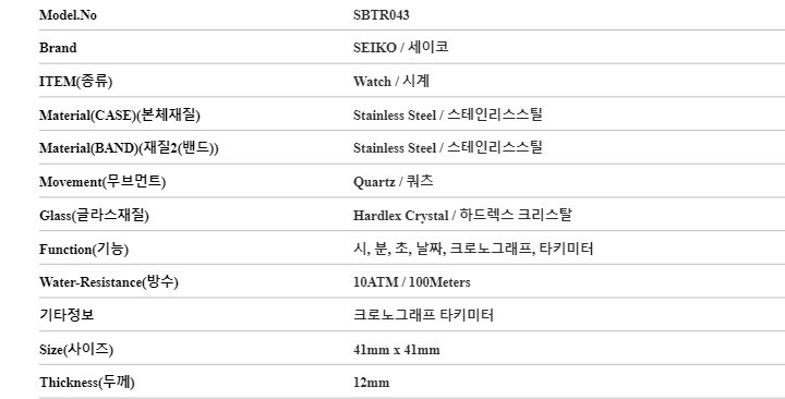 세이코 SBTR043 스피릿 크로노그래프 타키미터 남성 메탈시계