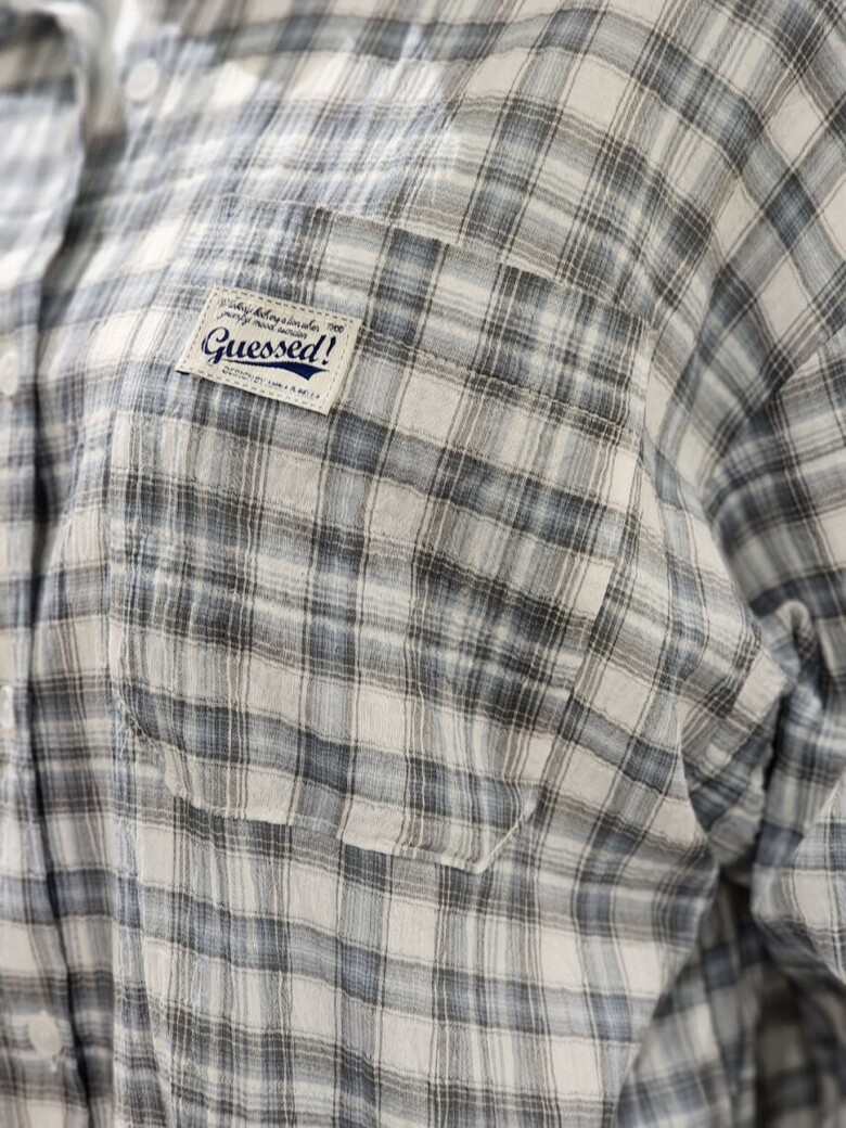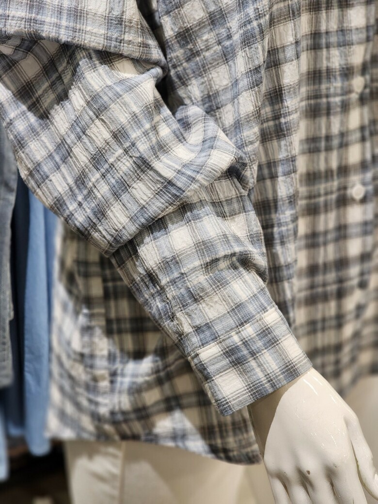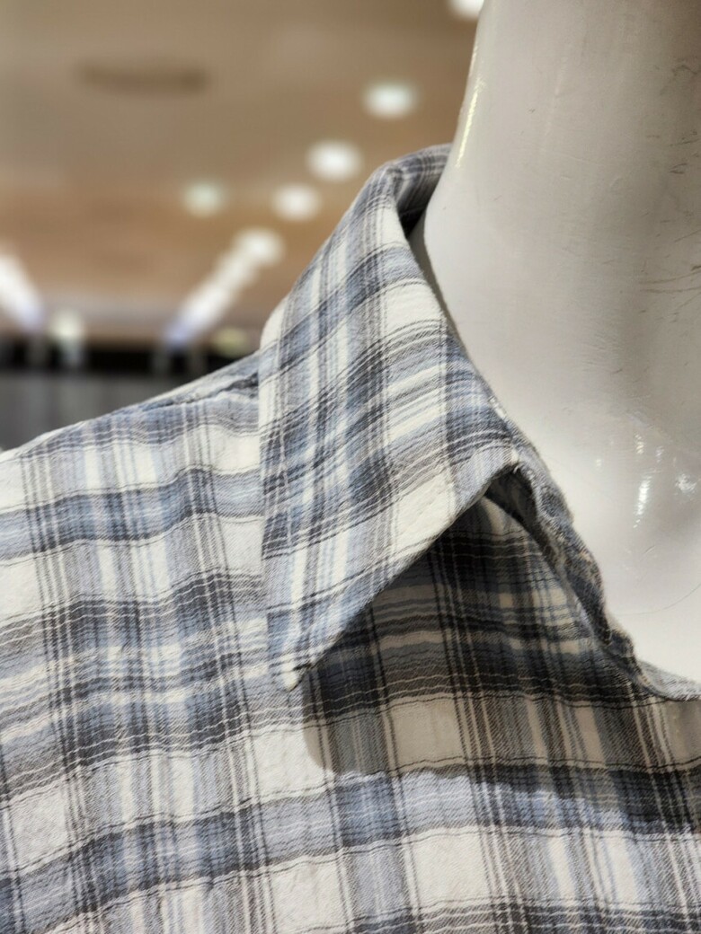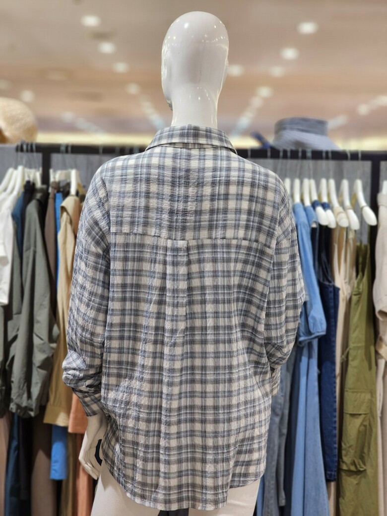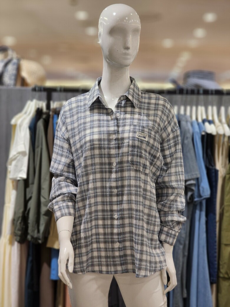 카라넥라인에 캐주얼한 체크무늬 셔츠입니다