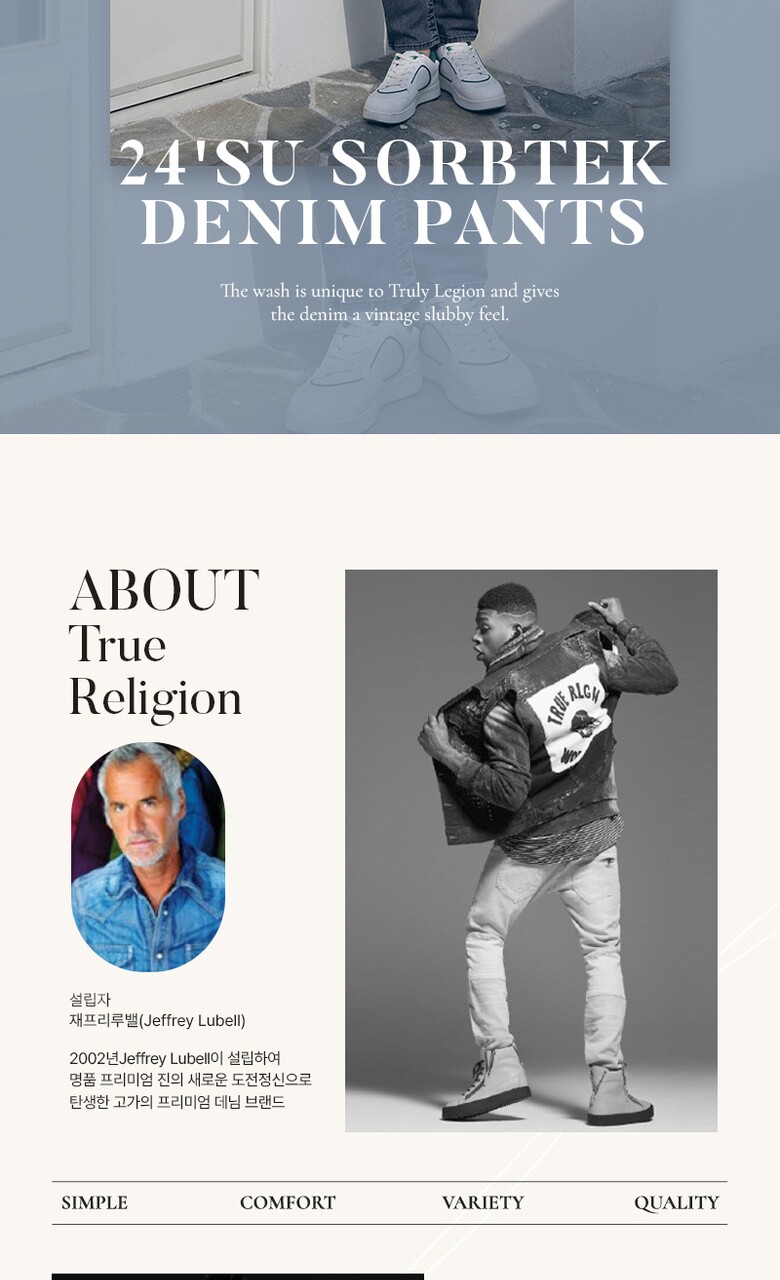 [트루릴리전] 남성 소보텍 데님 팬츠 2종택1