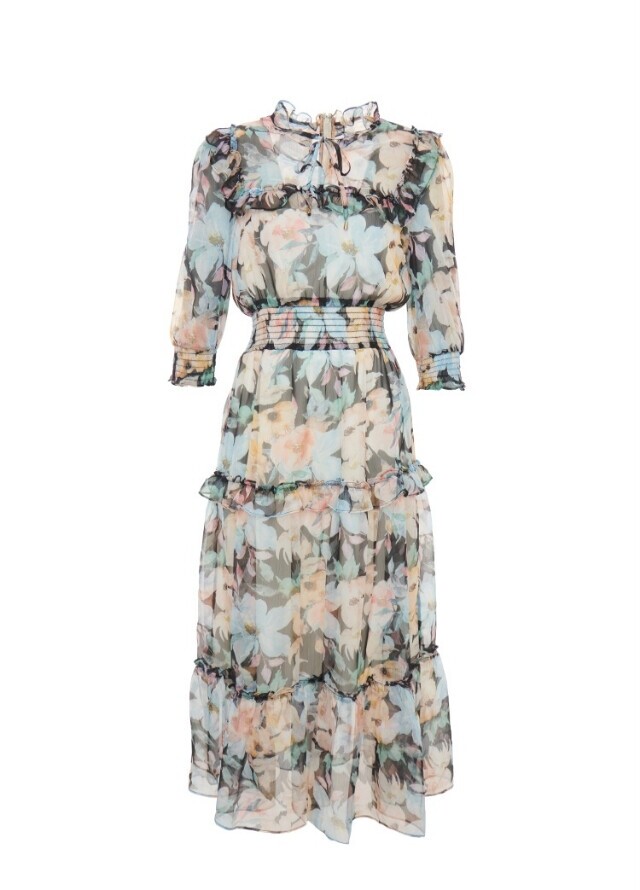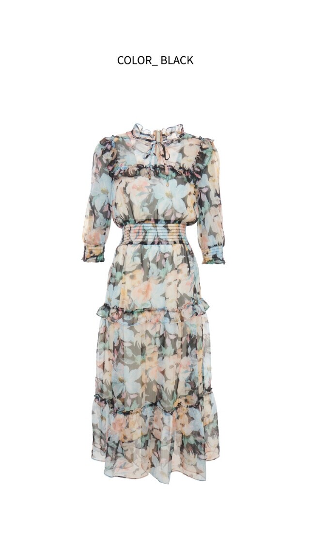 허리 스모킹 플라워 프린트 원피스S242m678