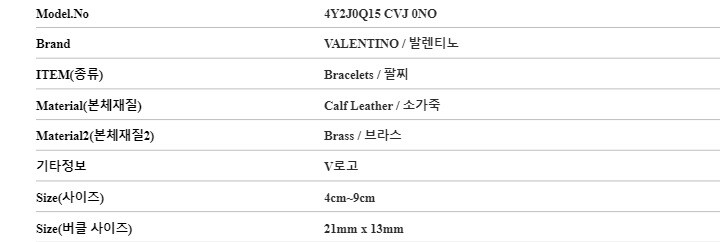| 7. 주요 사양 | 소가죽 팔찌 |
