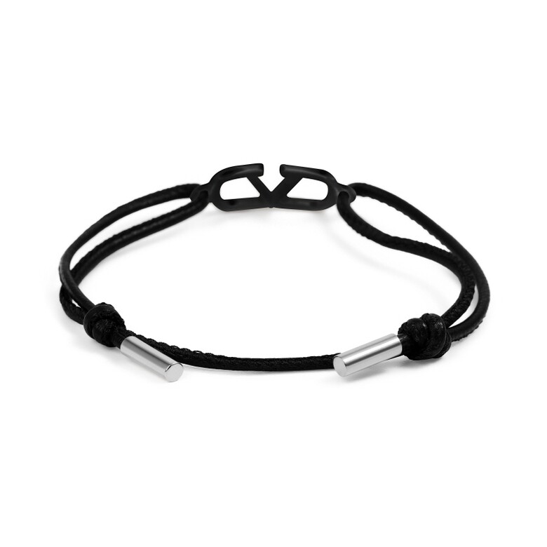 발렌티노 4Y2J0Q15 CVJ 0NO 가라바니 V로고 남성 가죽 팔찌