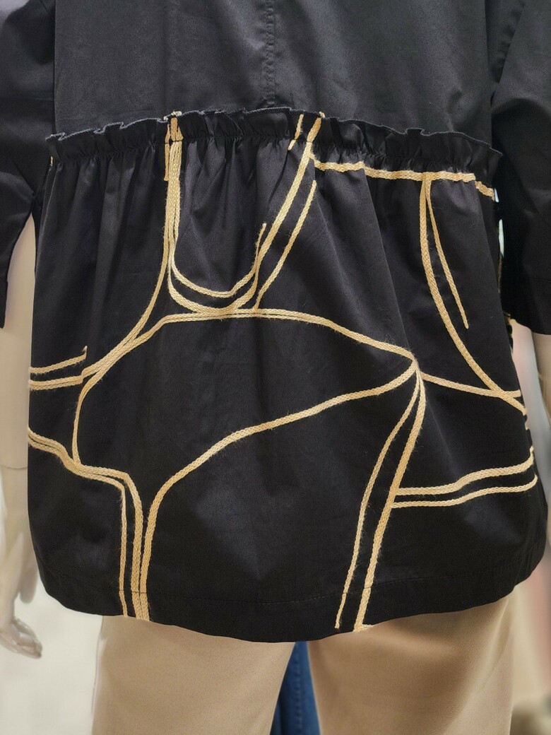 블랙 바탕에 자수 포인트 + 셔링 포인트.
