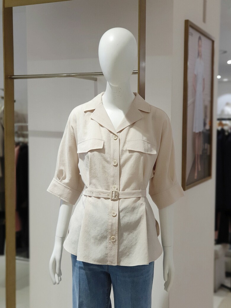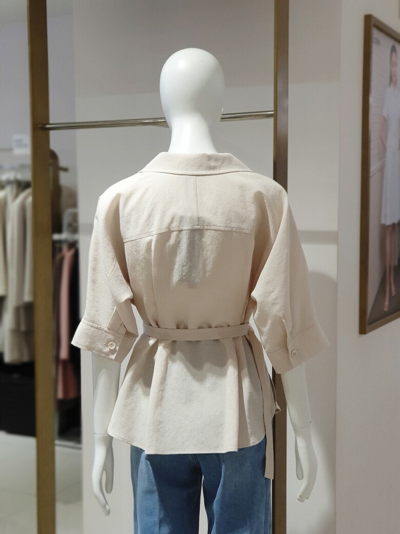 플랩 포켓 장식과 벨트 구성으로 포인트 연출이