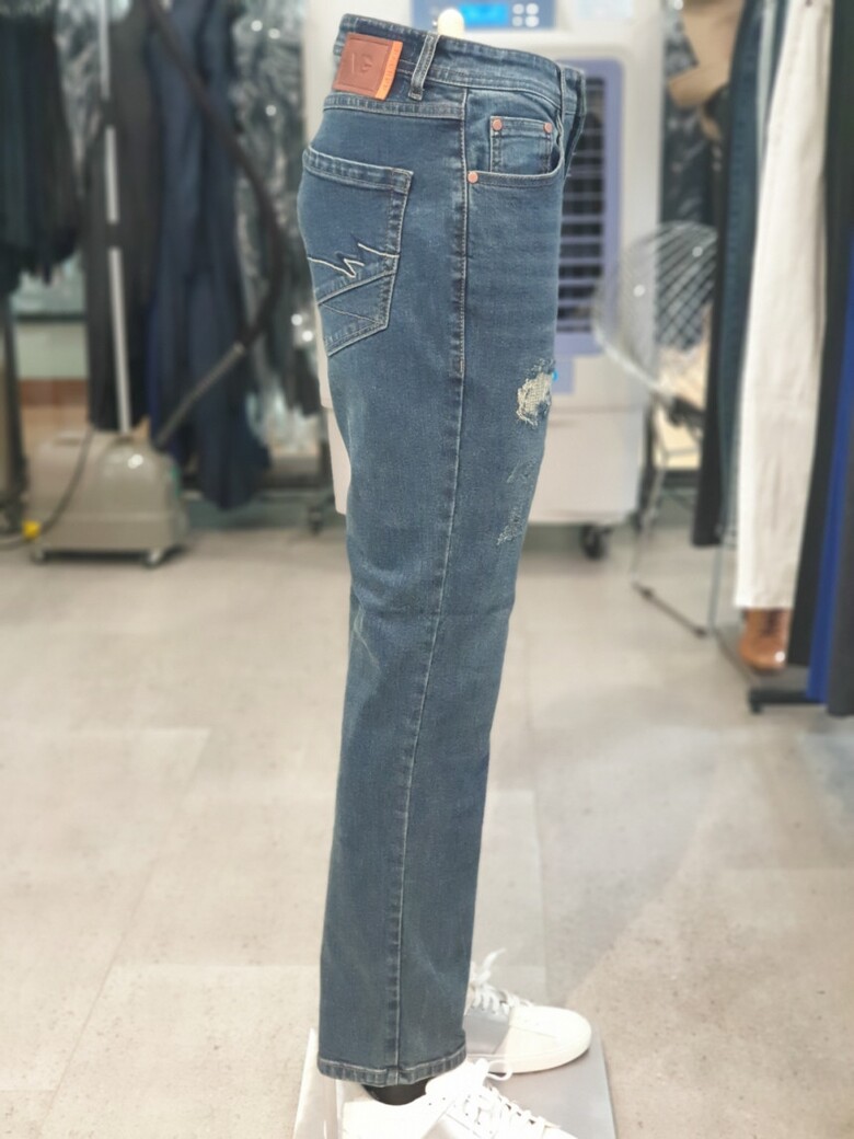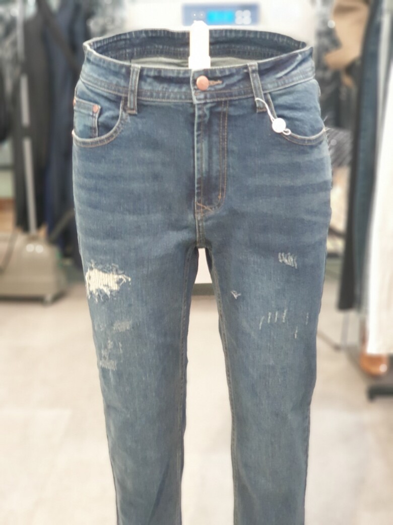 BON 23FW 블루 디스트로이 스탠다드 데님 청 바지 BN3WTA390BL