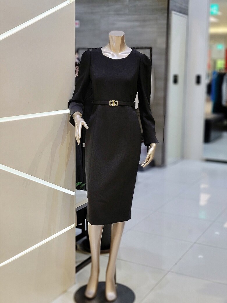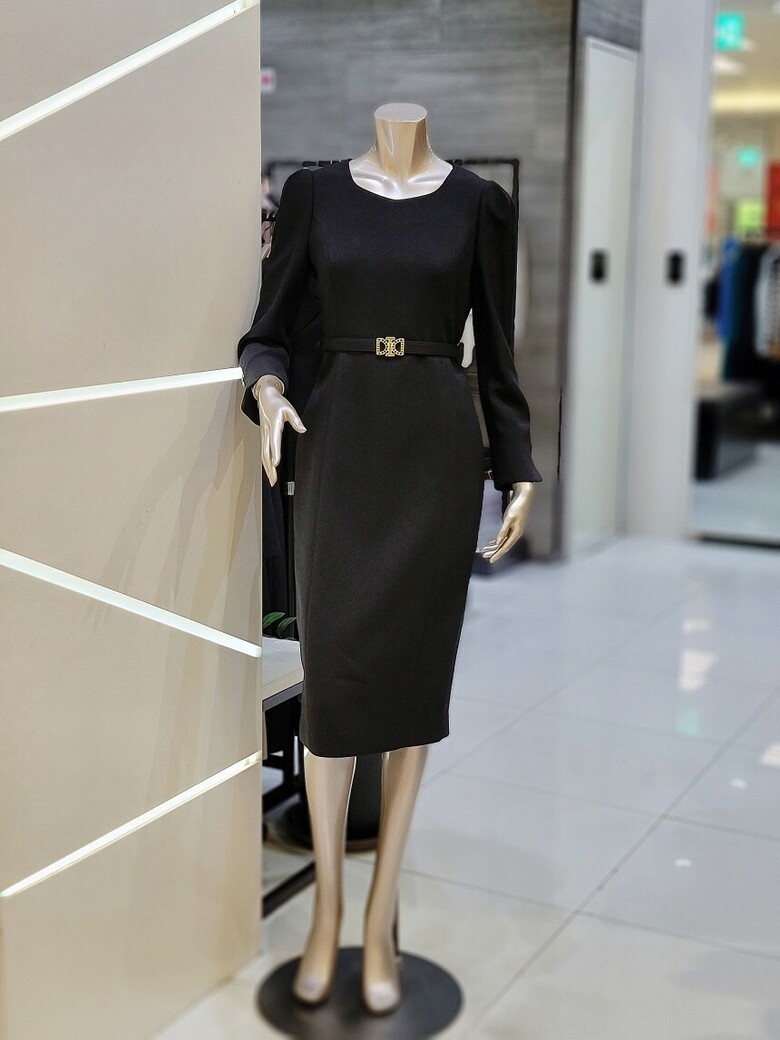 스퀘어 넥 라인에 슬림 하게 피팅 되는 H 라인 실루엣으로