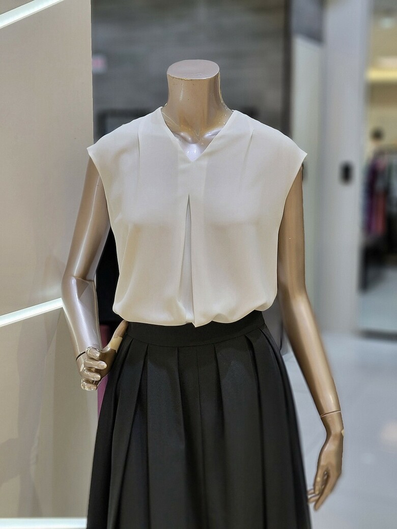 어깨라인의 턱 디테일이 맵시를 더하는 블라우스입니다.