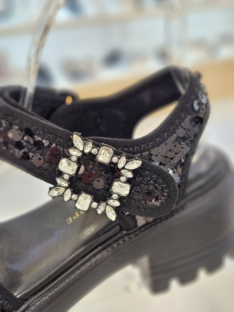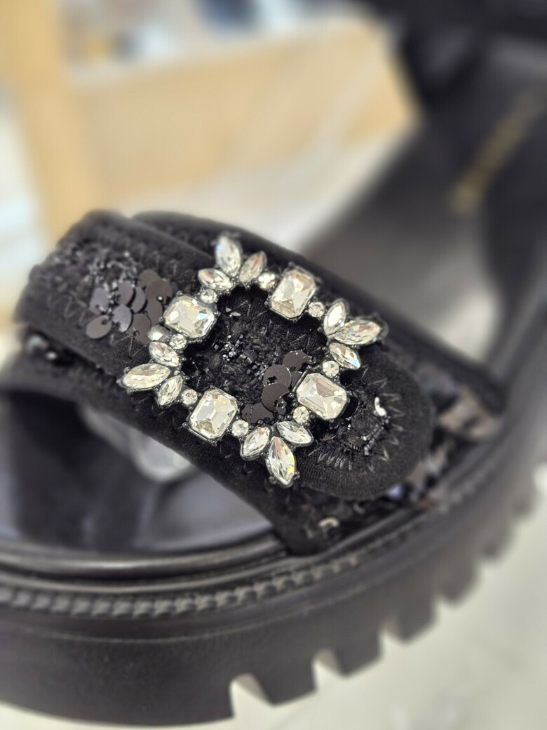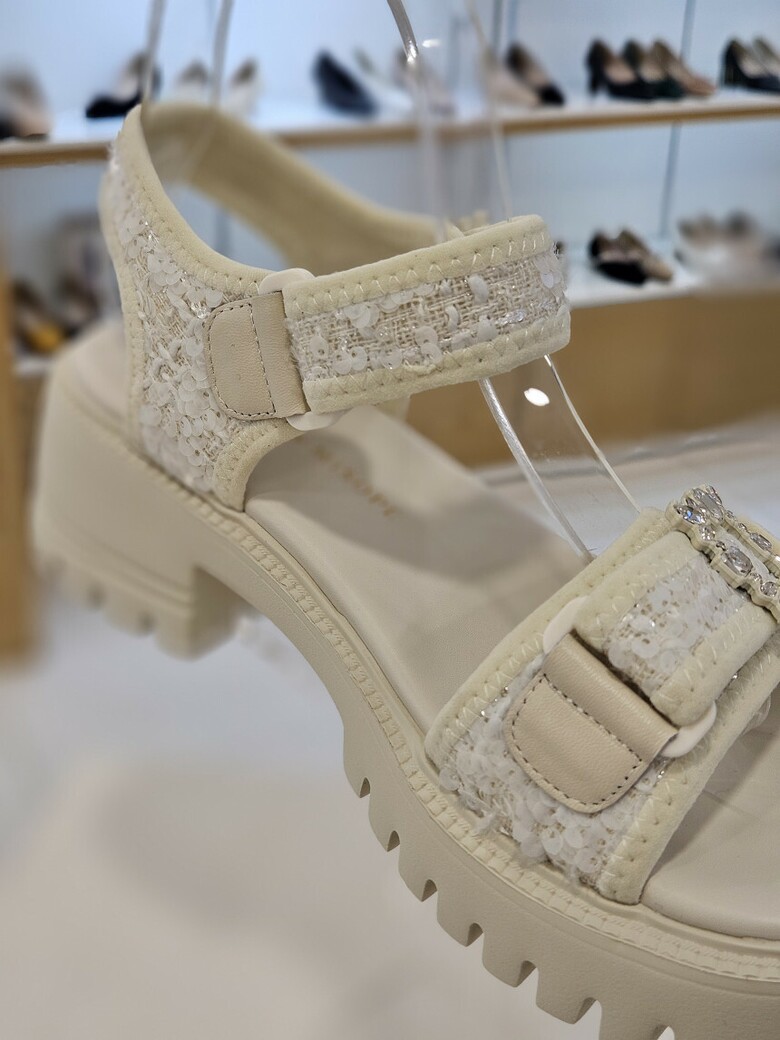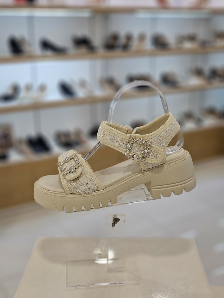 ▶트위드 소재에 보석벨트 장식사용으로 고급스러운 샌들