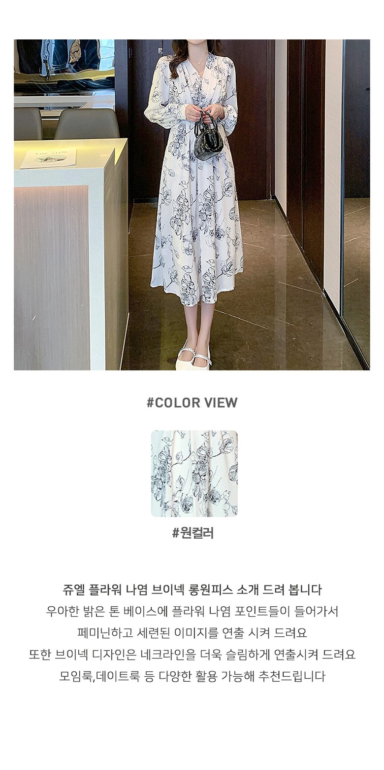 [~88까지]쥬엘 플라워 나염 브이넥 롱원피스