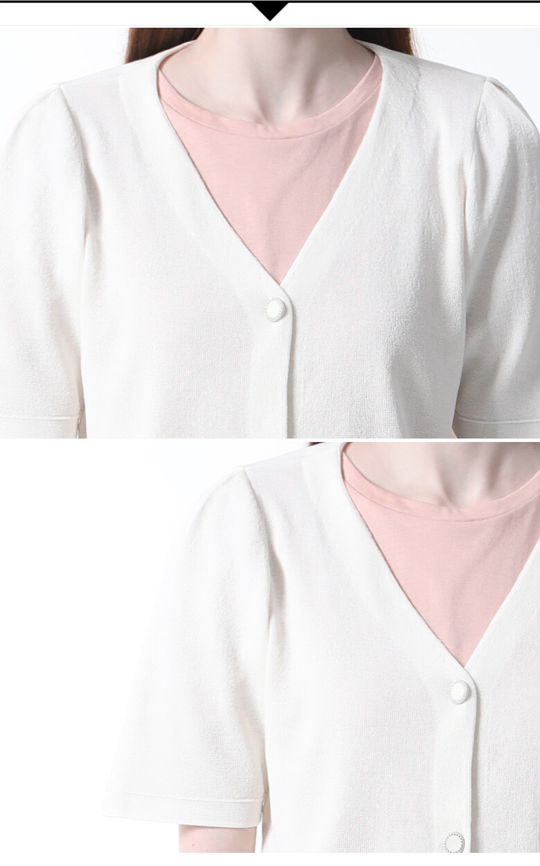숄더에 턱 디테일을 적용하여 볼륨감을 전해주는 반팔 니트 가디건입니다. 브랜드만의 고급재질로 부드럽고 유연한 착용감을 선사합니다.