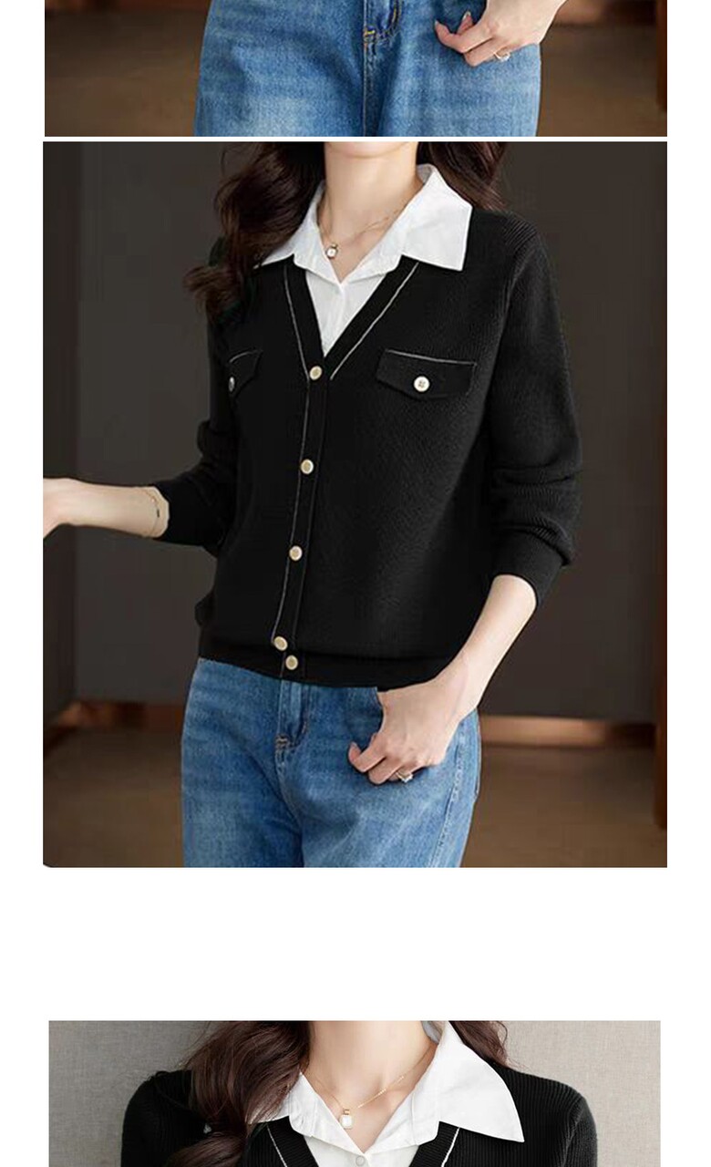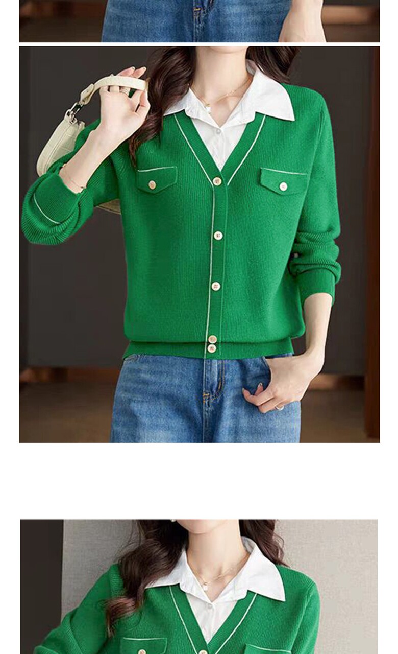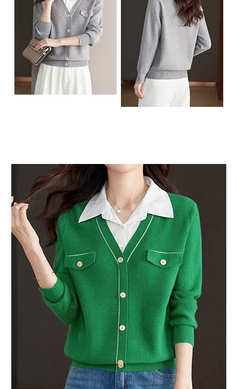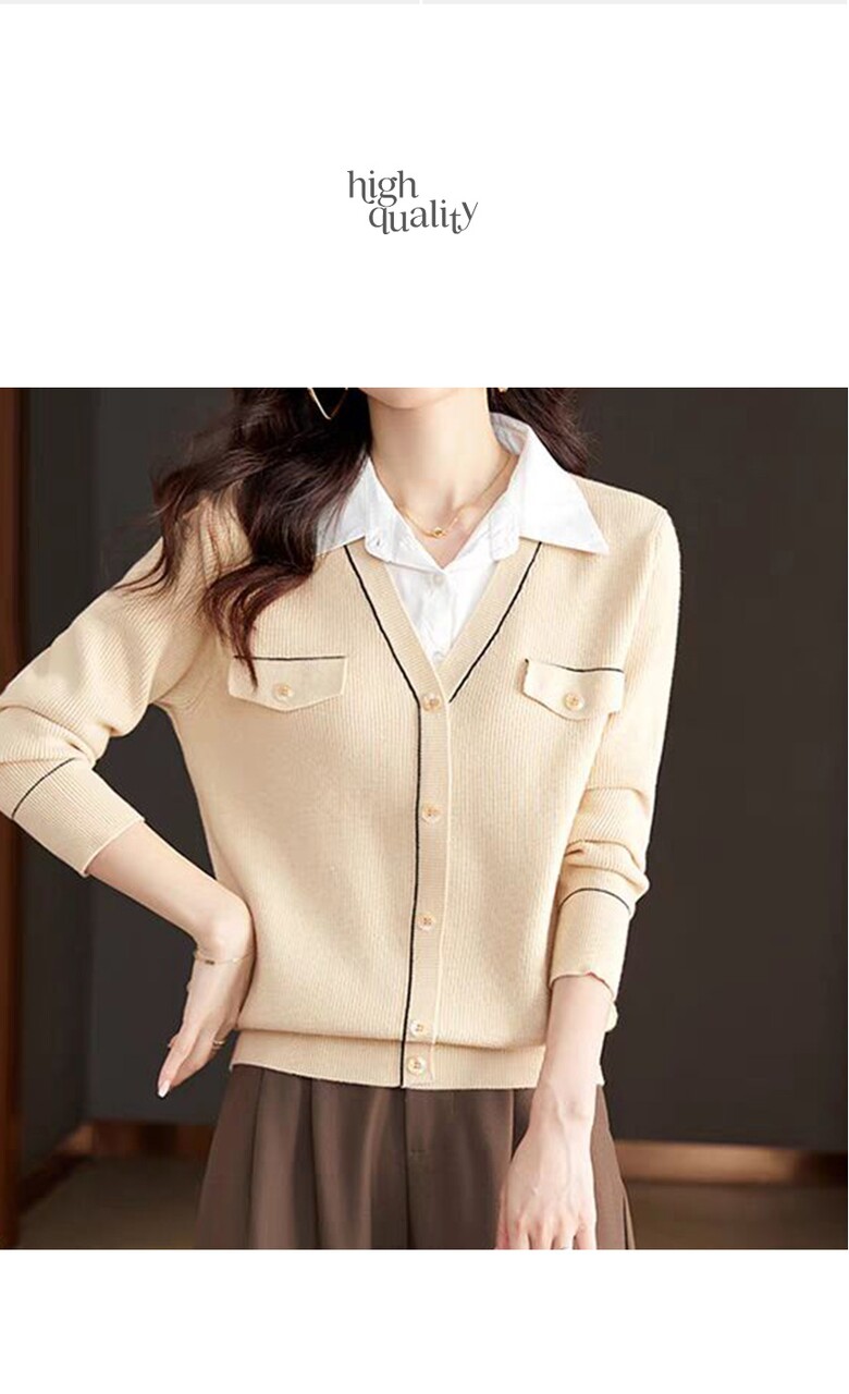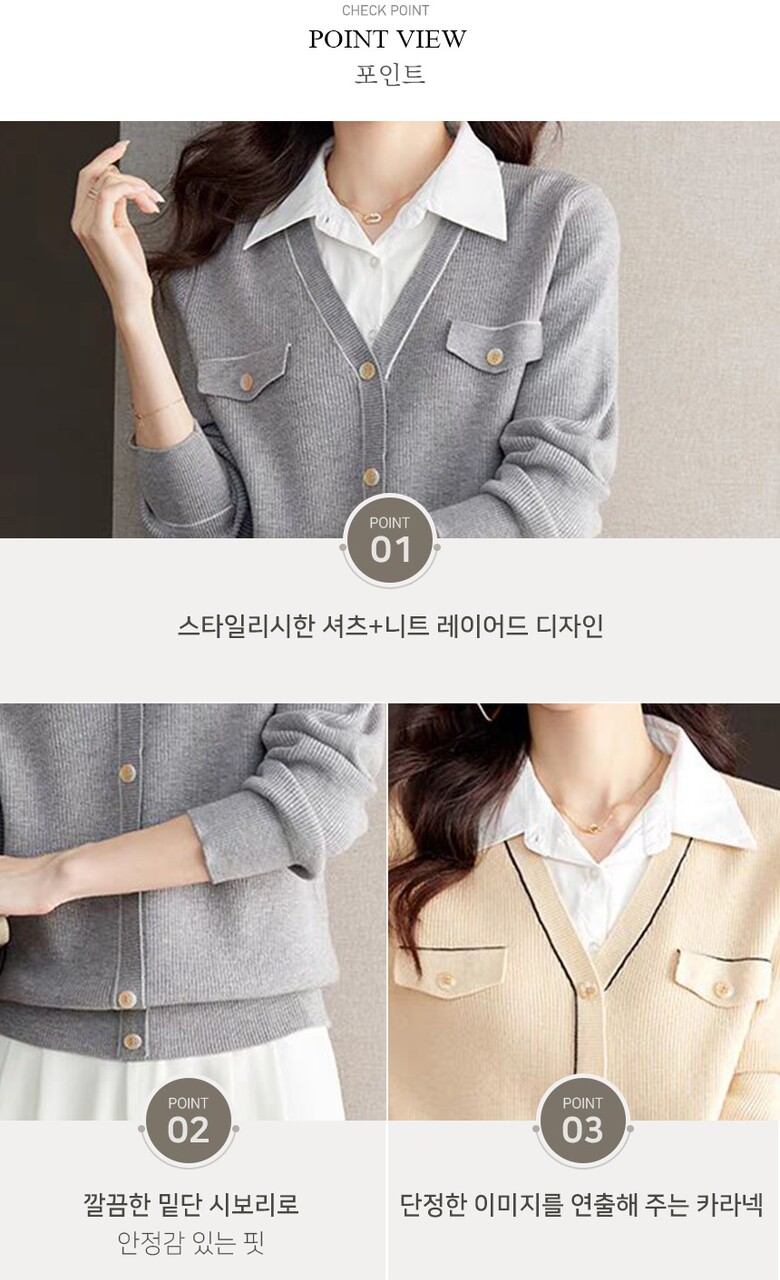 [키리앙] 루시엘 가디건형 셔츠 레이어드 니트