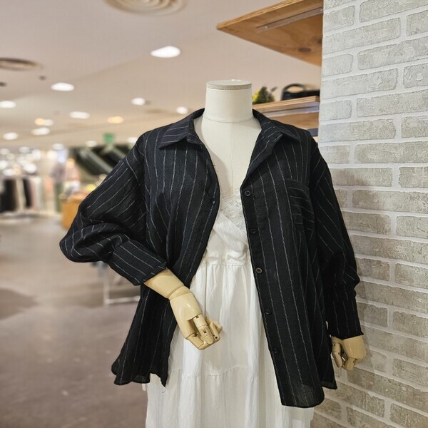 LK61D9NB535X_뒷절개 스트라이프 버튼 남방