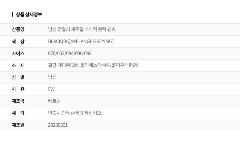 | 2. 색상 | BLACK(BK)/MELANGE GREY(MG) |