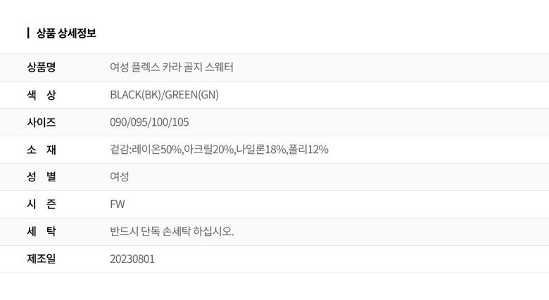| 2. 색상 | BLACK(BK)/GREEN(GN) |