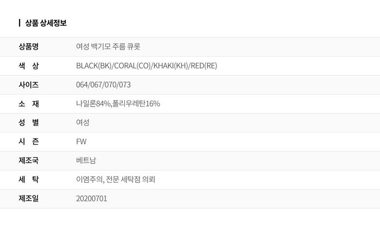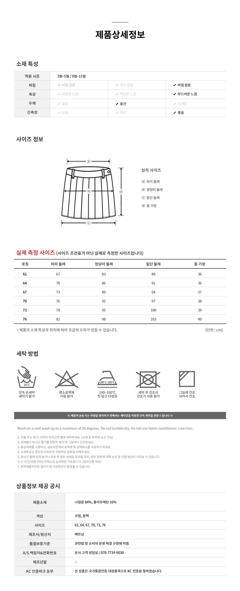 | 6. 세탁방법 및 취급시 주의사항 | 이염주의, 전문 세탁점 의뢰 |
