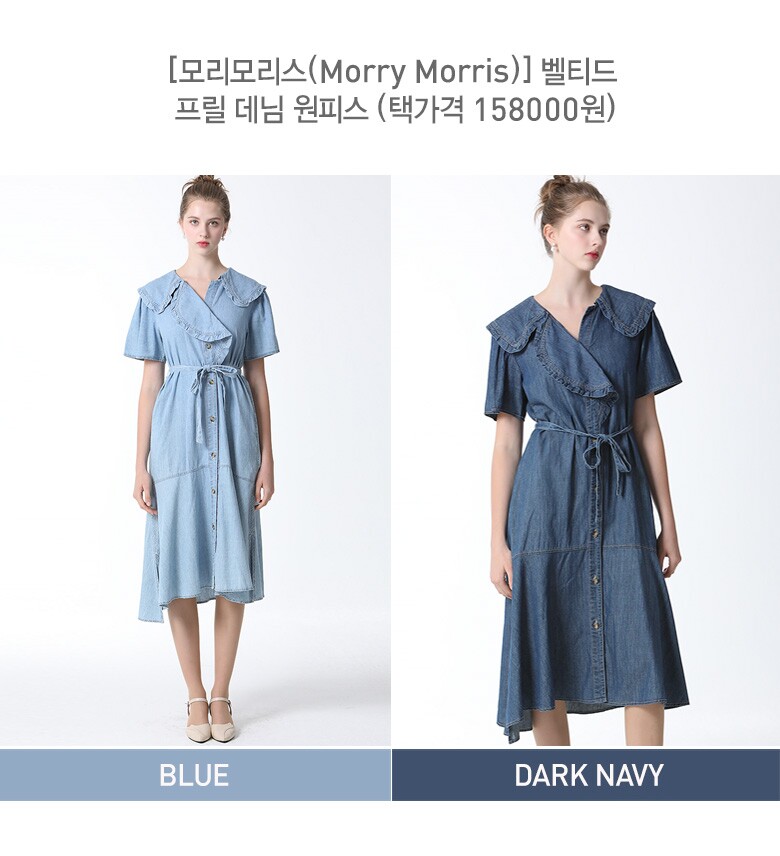 [모리모리스(Morry Morris)] 벨티드 프릴 데님 원피스