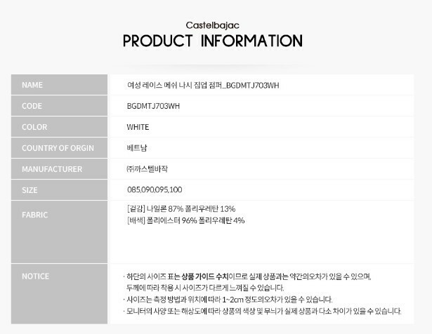 *겉감 : 나일론 87%, 폴리우레탄 13%