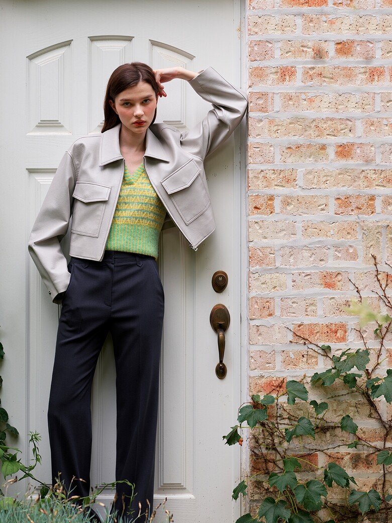 - 스탠카라의 크롭기장 페이크레더 자켓으로