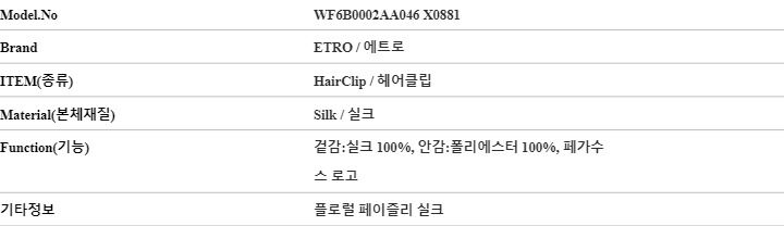 에트로 WF6B0002AA046 X0881 플로럴 페이즐리 실크 여성 헤어클립