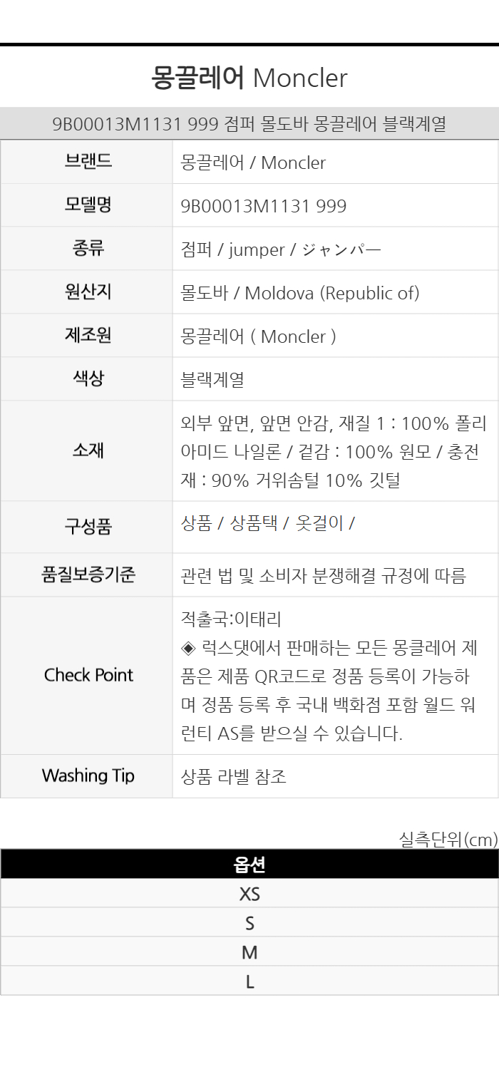 | 6. 세탁방법 및 취급시 주의사항 | 상품상세 참조 |