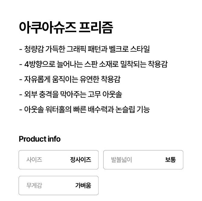 | 1. 제품 소재 (운동화인 경우에는 겉감, 안감을 구분하여 표시) | 상품상세참조 |