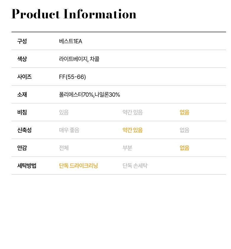 1. 제품 소재 (섬유의 조성 또는 혼용률을 백분율로 표시, 기능성인 경우 성적서 또는 허가서) | 폴리에스터70%,나일론30% |