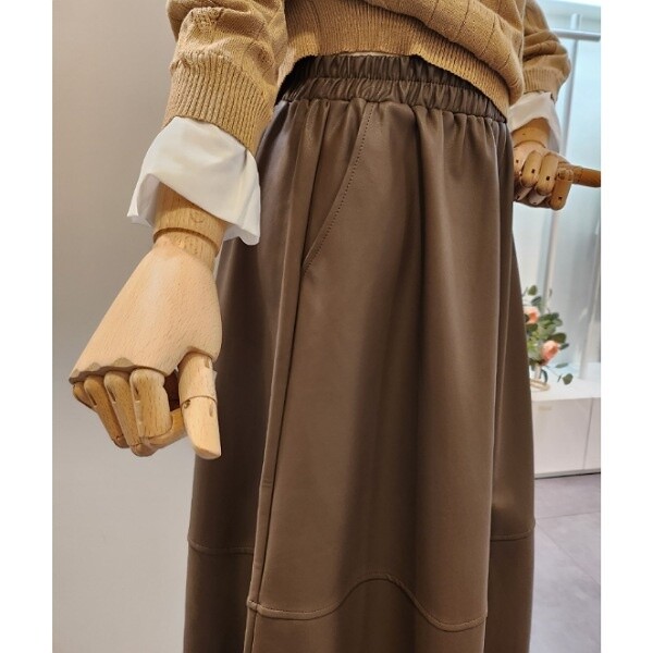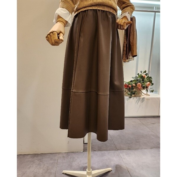 CO7WSK06_밴딩 레자 롱 스커트