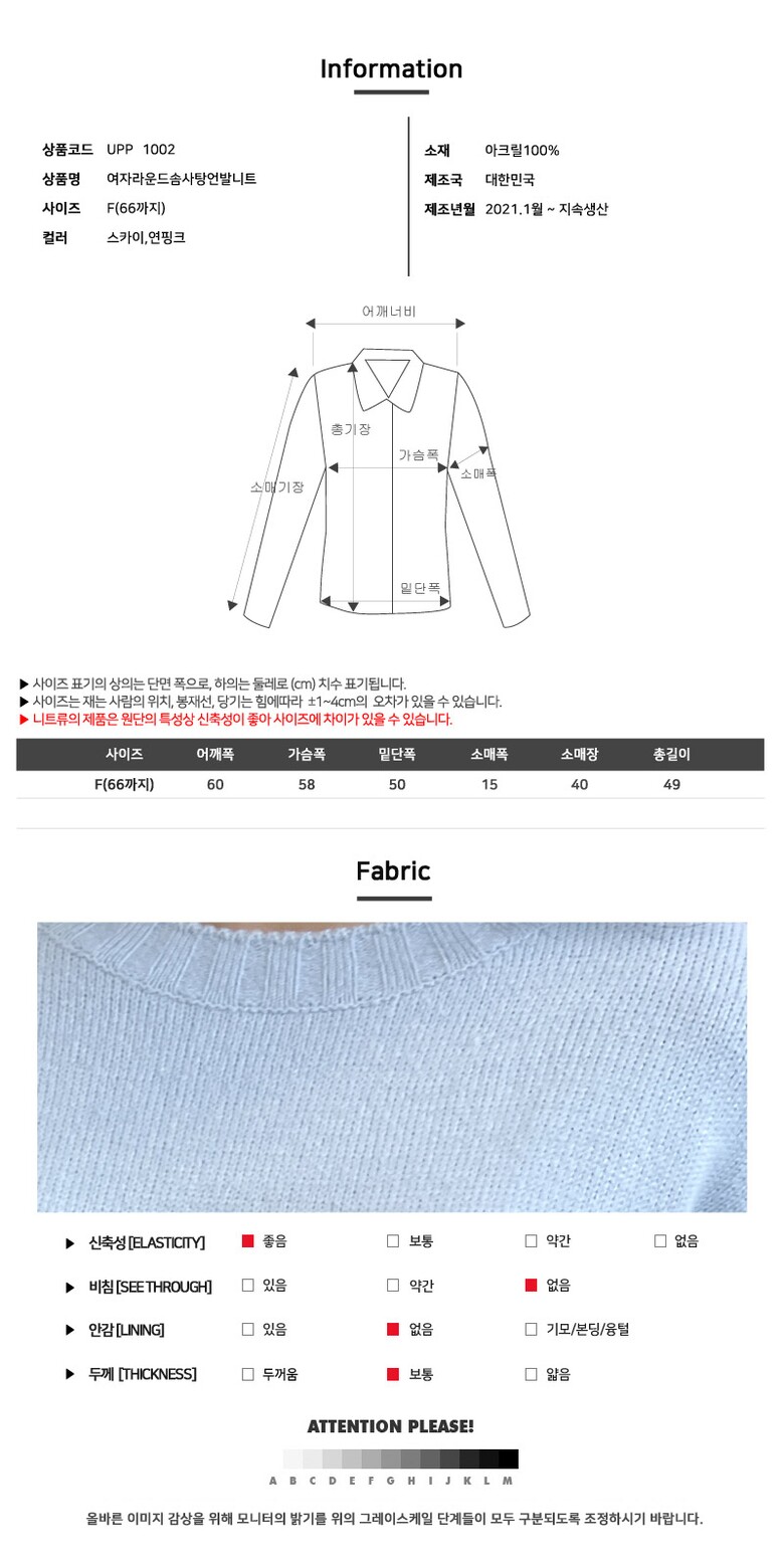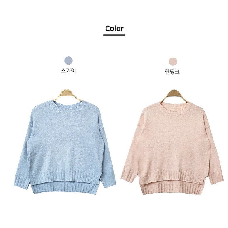 블레오 여성 봄 가을 기본 라운드 언발 데일리 긴팔 니트