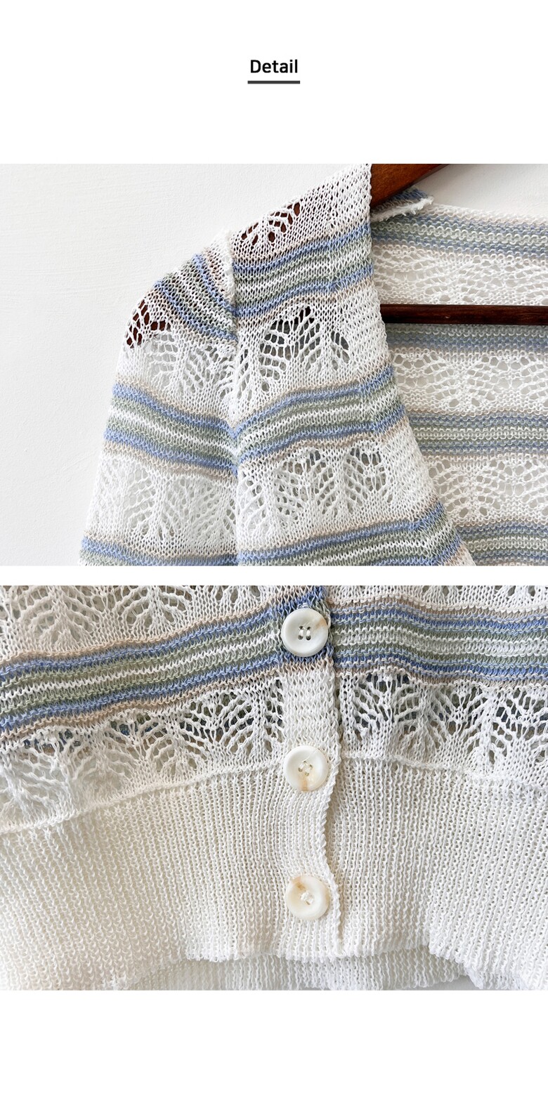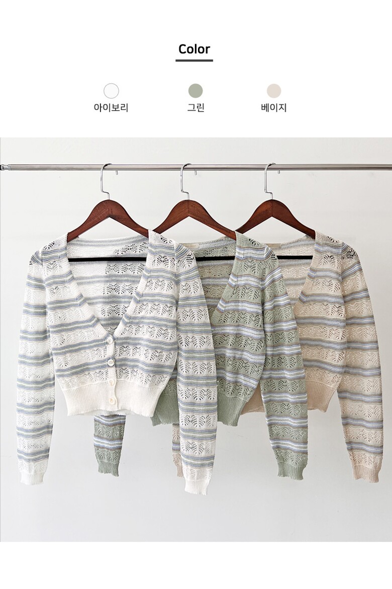 블레오 여성 여름 브이넥 스트라이프 펀칭 슬림핏 긴팔 가디건