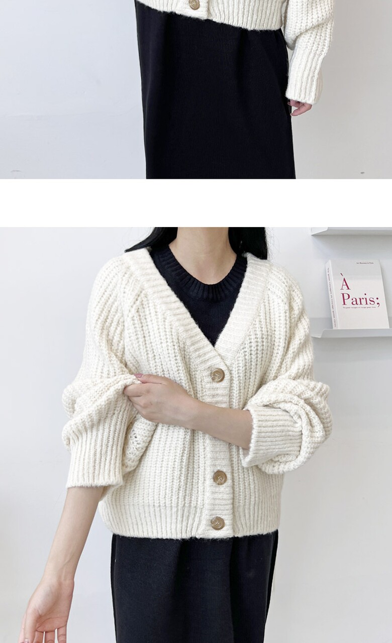 블레오 여성 겨울 기본 브이넥 오버핏 긴팔 니트 가디건