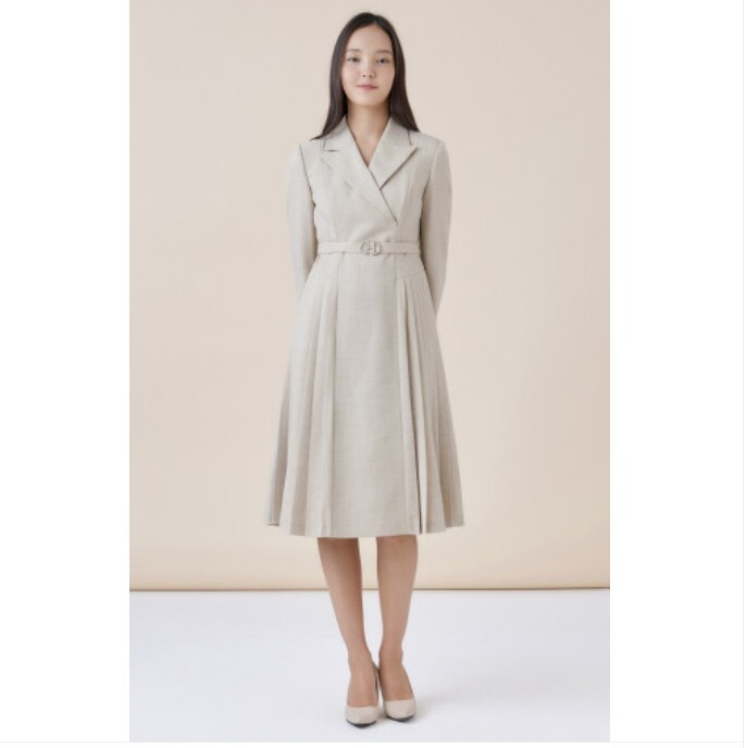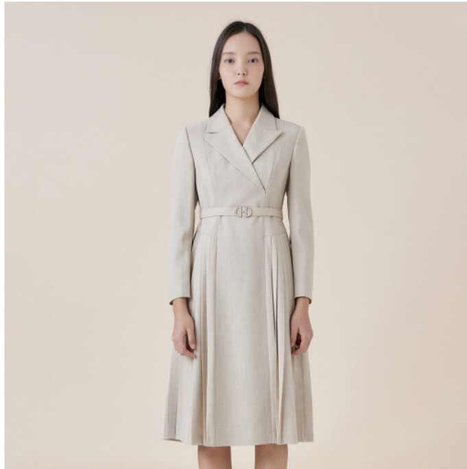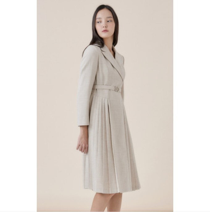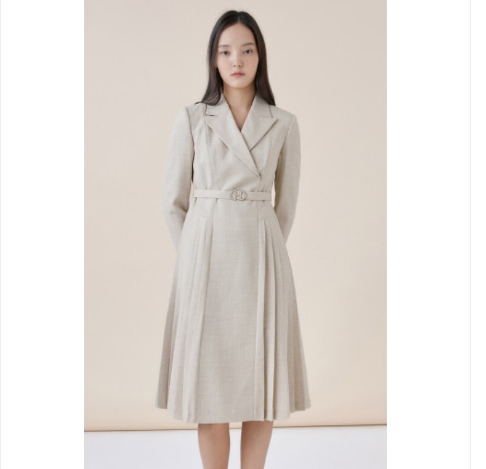 피키드 라펠 카라 디자인으로 더욱 세련된 무드의 원피스입니다.