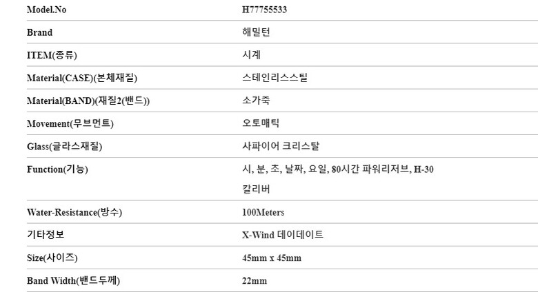| 7-2. 시계 - 기능, 방수 등 | 상세정보참조 |