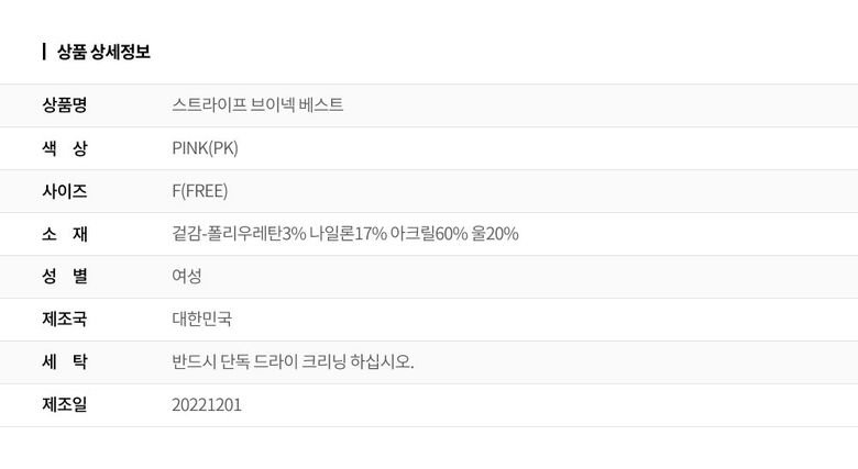 | 1. 제품 소재 (섬유의 조성 또는 혼용률을 백분율로 표시, 기능성인 경우 성적서 또는 허가서) | 겉감-폴리우레탄3% 나일론17% 아크릴60% 울20% |