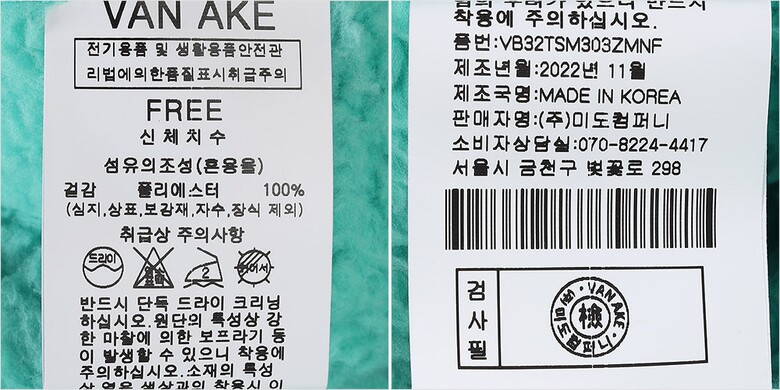 | 1. 제품 소재 (섬유의 조성 또는 혼용률을 백분율로 표시, 기능성인 경우 성적서 또는 허가서) | 겉감-폴리에스터100% |