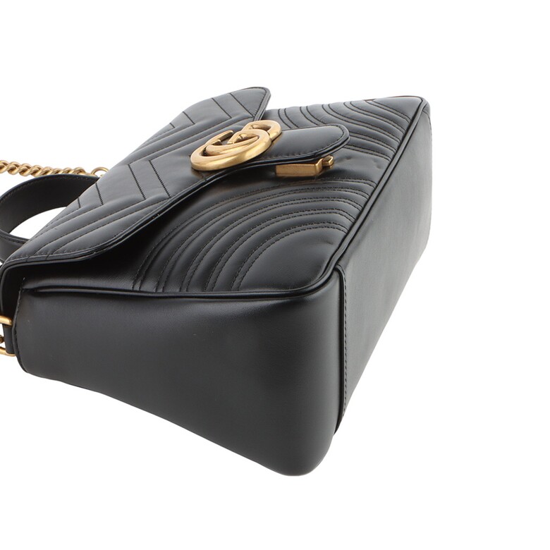 - 마틀라세 쉐브론 가죽에 앤틱한 더블 GG 금장 로고의