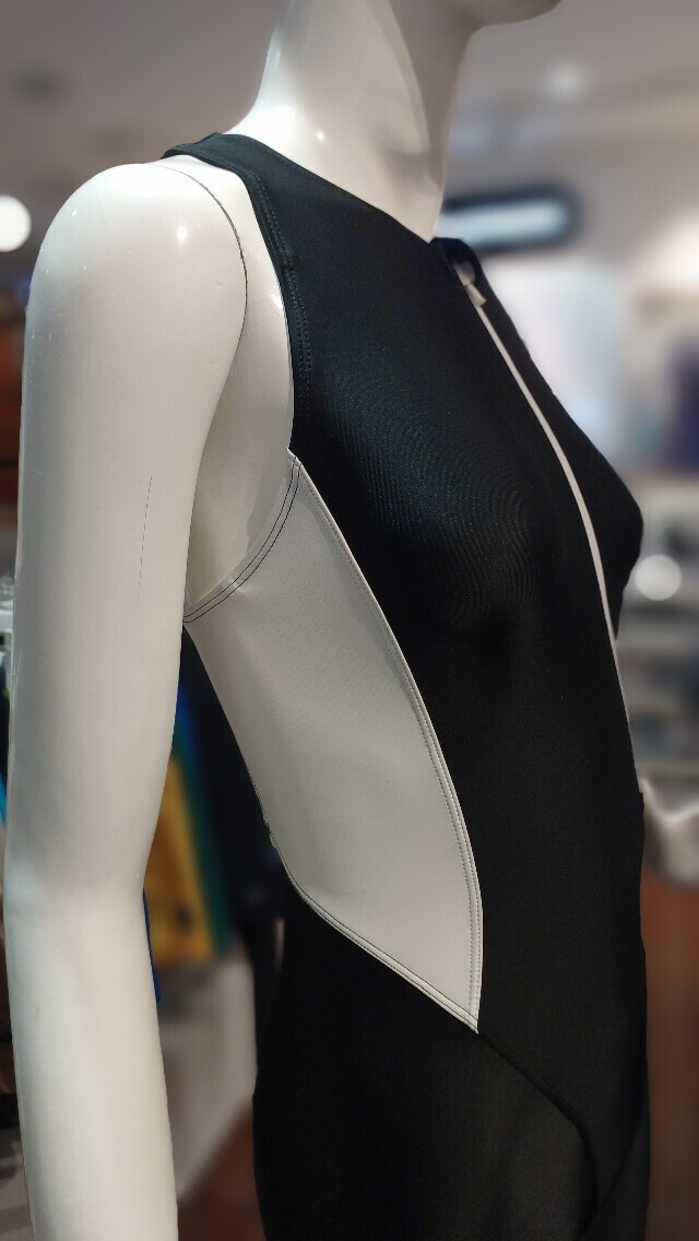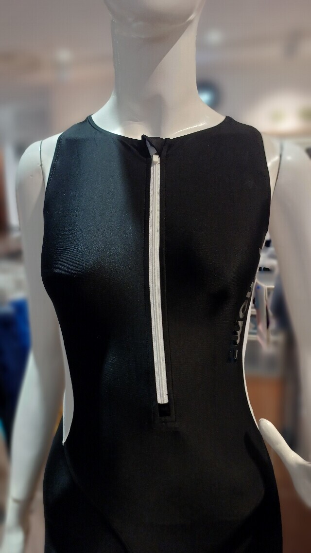지퍼가 있어 착용 할 때 편한 X백 4부 반신 수영복입니다.